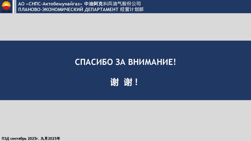 АО «СНПС-Актобемунайгаз» 中油阿克纠兵油气股份公司ПЛАНОВО-ЭКОНОМИЧЕСКИЙ ДЕПАРТАМЕНТ 经营计划部