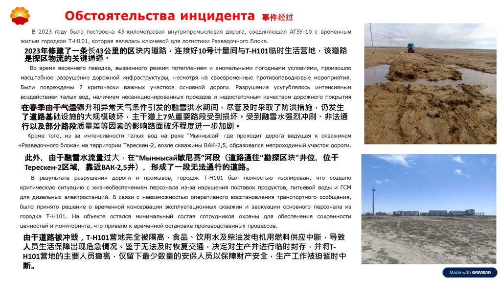 Обстоятельства инцидента 事件经过В 2023 году была построена 43-километровая внутрипромысловая дорога, соединяющая АГЗУ-10 с временным