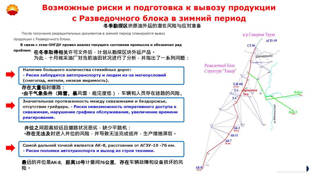 Возможные риски и подготовка к вывозу продукциис Разведочного блока в зимний период