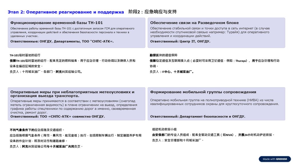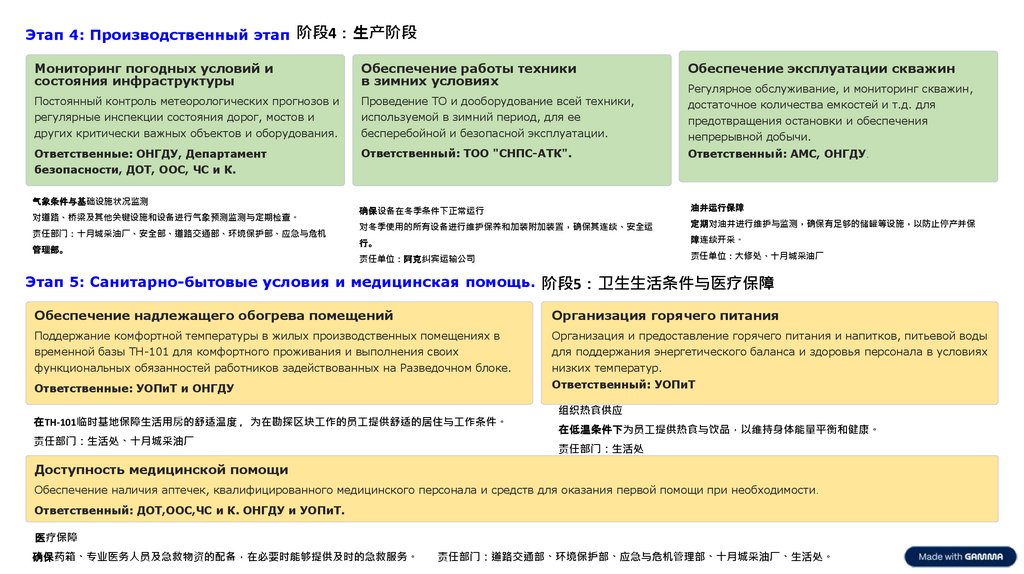 人员生活保障出现危急情况。鉴于无法及时恢复交通 决定对生产井进行临时封存 并将ТН101营地的主要人员撤离 仅留下最少数量的安保人员以保障财产安全 生产工作被迫暂时中