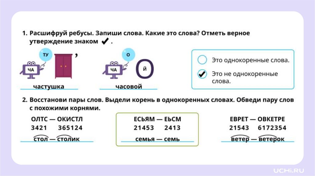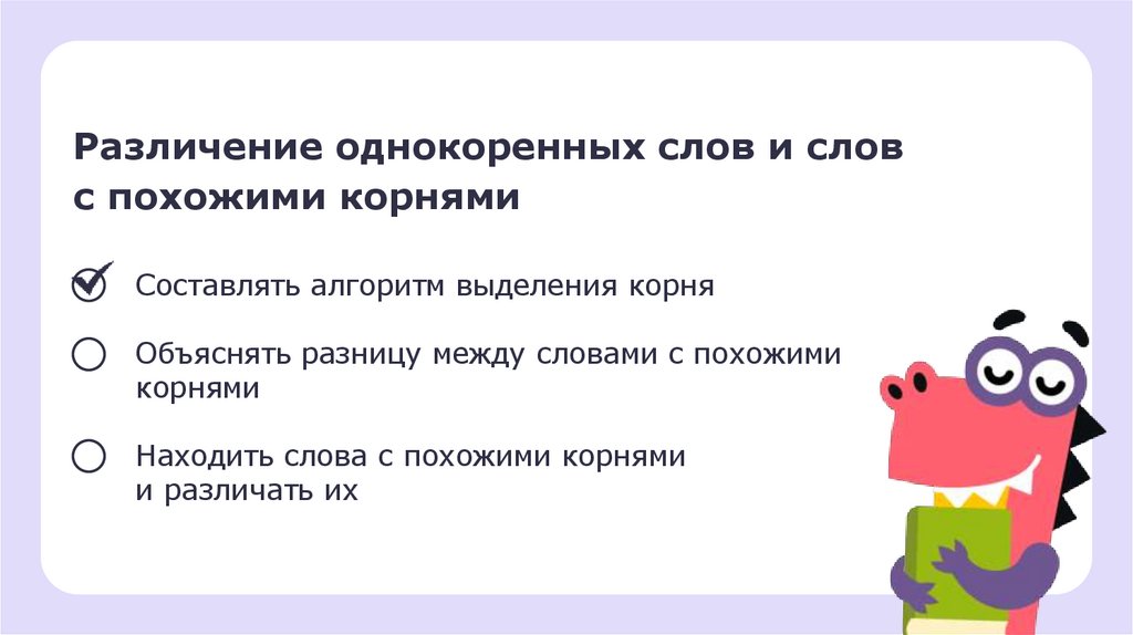 Различение однокоренных слов и словс похожими корнями