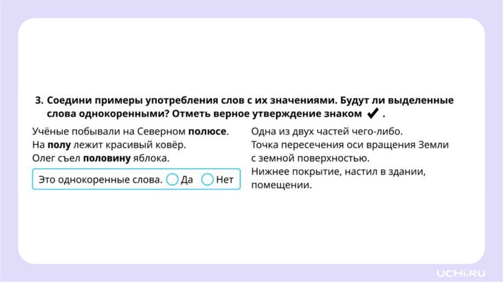 Русский язык, 3 класс, Различение однокоренных слов и слов с омонимичными корнями