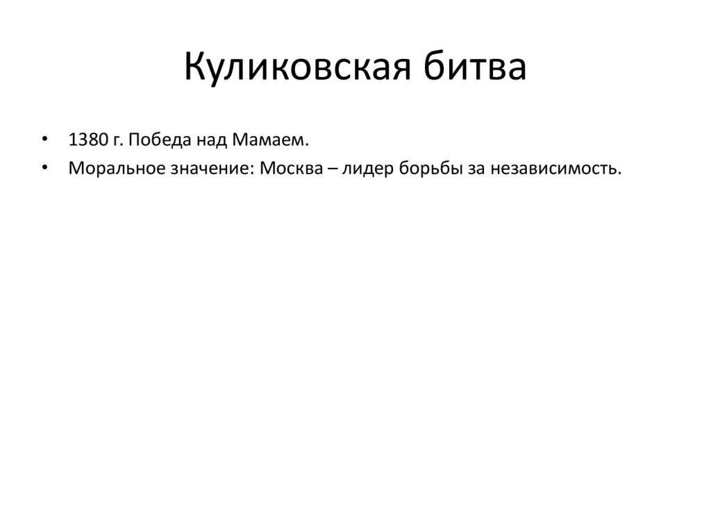 Куликовская битва• 1380 г. Победа над Мамаем.