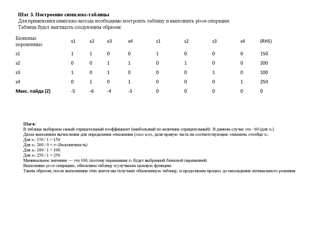 Таким образом, после выполнения этих шагов мы получаем обновленную таблицу, и продолжаем процесс до нахождения оптимального решения.