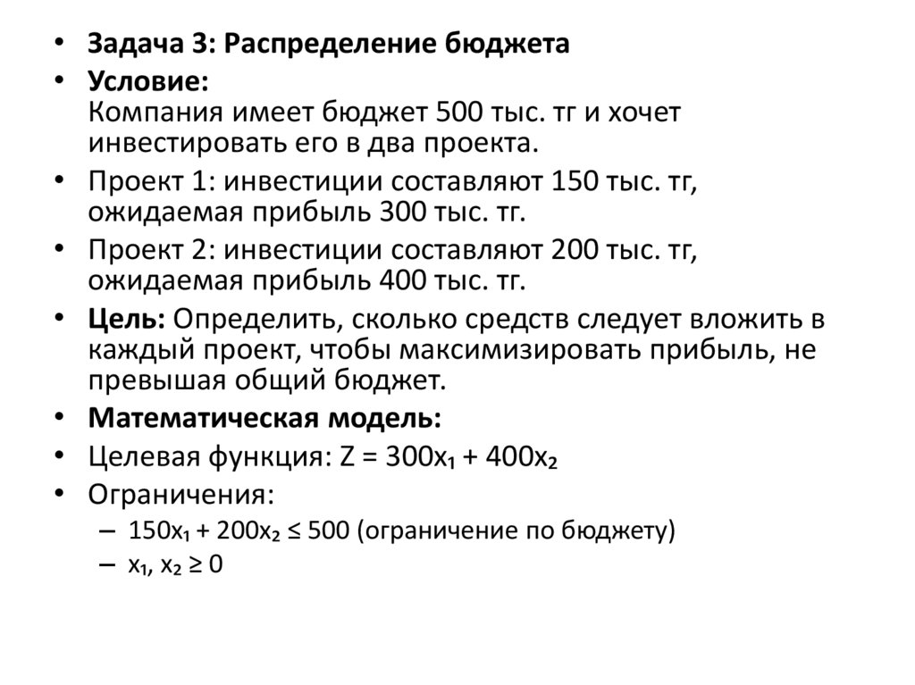 • Задача: Компания выпускает два продукта: A и B.• Продукт A: требуется 3 часа работы и 2 единицы