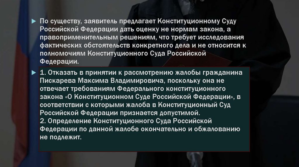об отказе в принятии к рассмотрению жалобы гражданинаПискарева Максима Владимировича на нарушение его