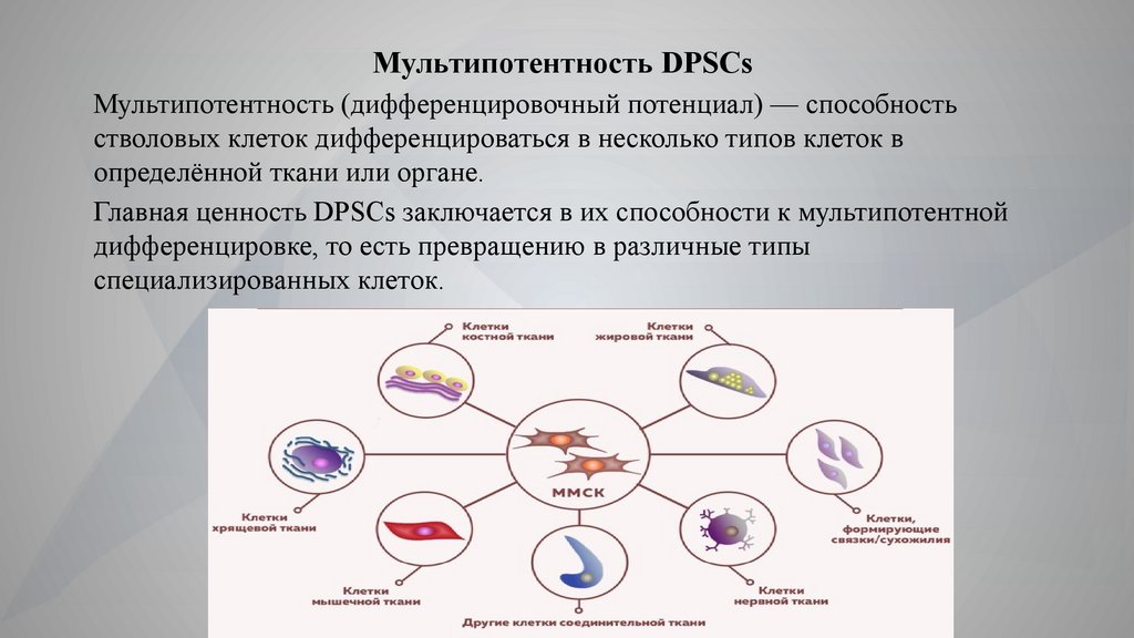 Главная ценность DPSCs заключается в их способности к мультипотентной