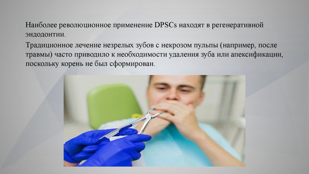 Наиболее революционное применение DPSCs находят в регенеративнойэндодонтии.