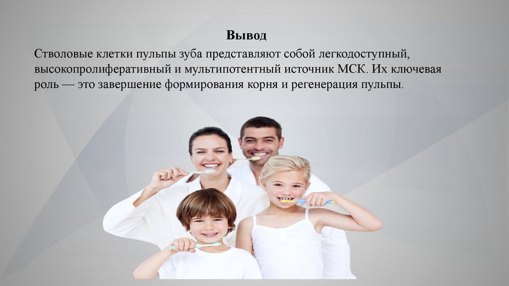 ВыводСтволовые клетки пульпы зуба представляют собой легкодоступный,