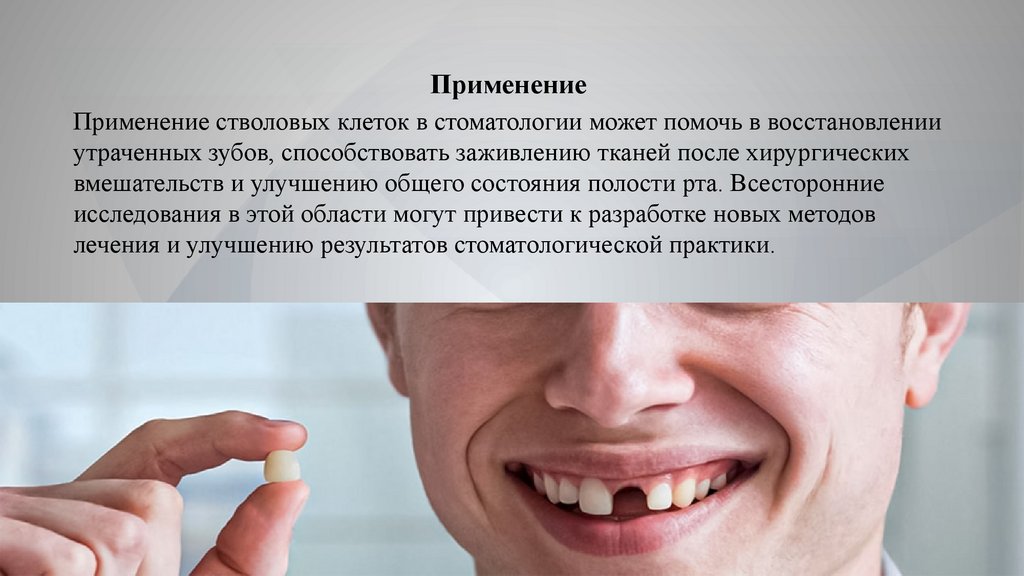 ПрименениеПрименение стволовых клеток в стоматологии может помочь в восстановлении