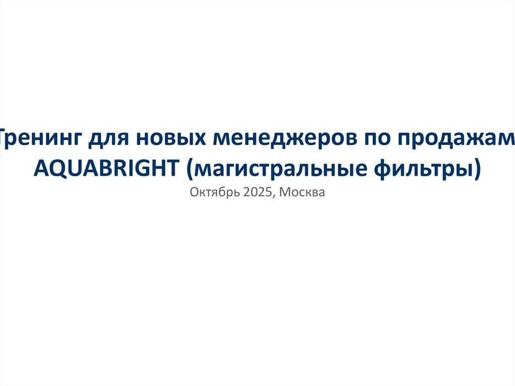 Тренинг для новых менеджеров по продажам:AQUABRIGHT (магистральные фильтры)