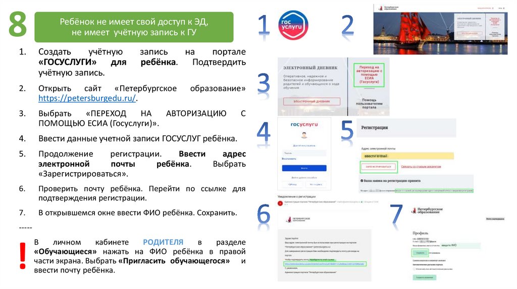 Родитель: не имеет доступ к ЭД,не имеет учётную запись ГУ