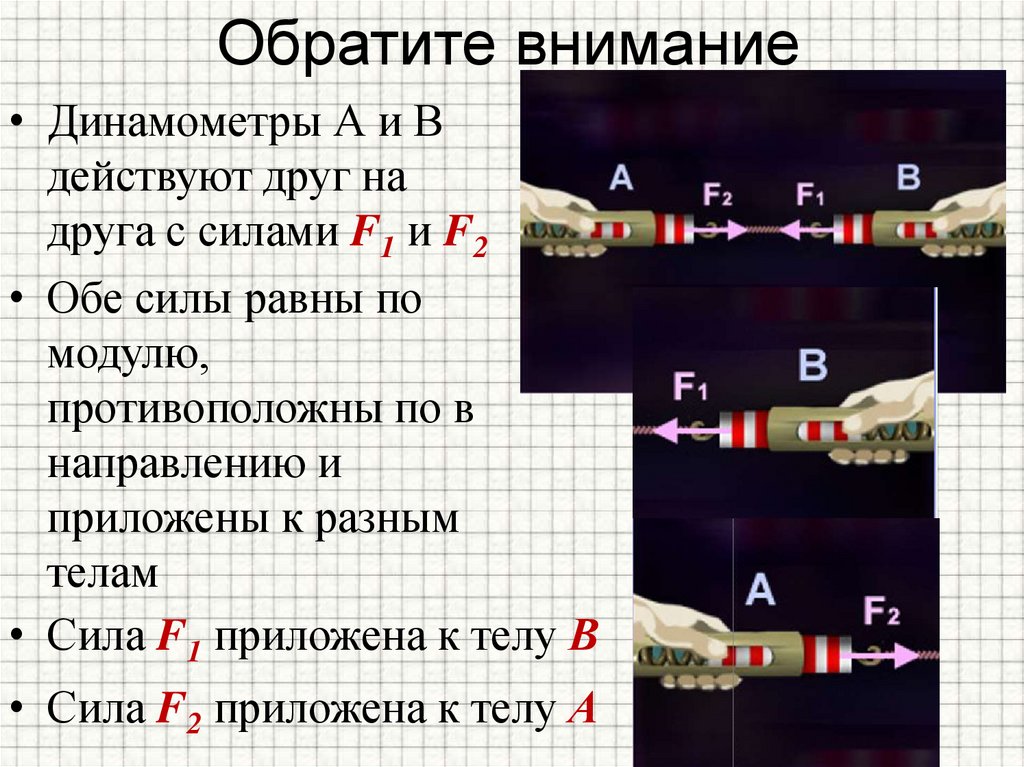 Обратите внимание• Динамометры А и В
