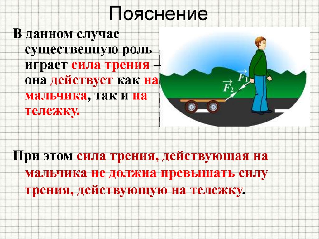 Если мальчик будет идти поскользкому льду, то силы