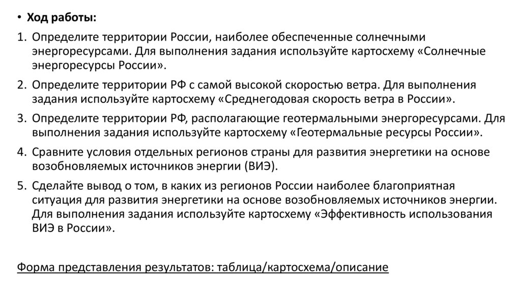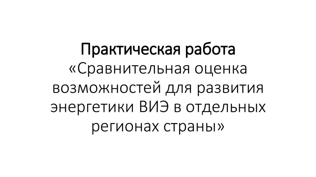 1. Практическая работа «Сравнительная оценка возможностей для развития энергетики ВИЭ в отдельных регионах страны»