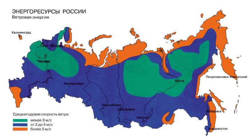 задания используйте картосхему «Среднегодовая скорость ветра в России».