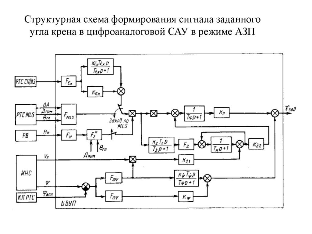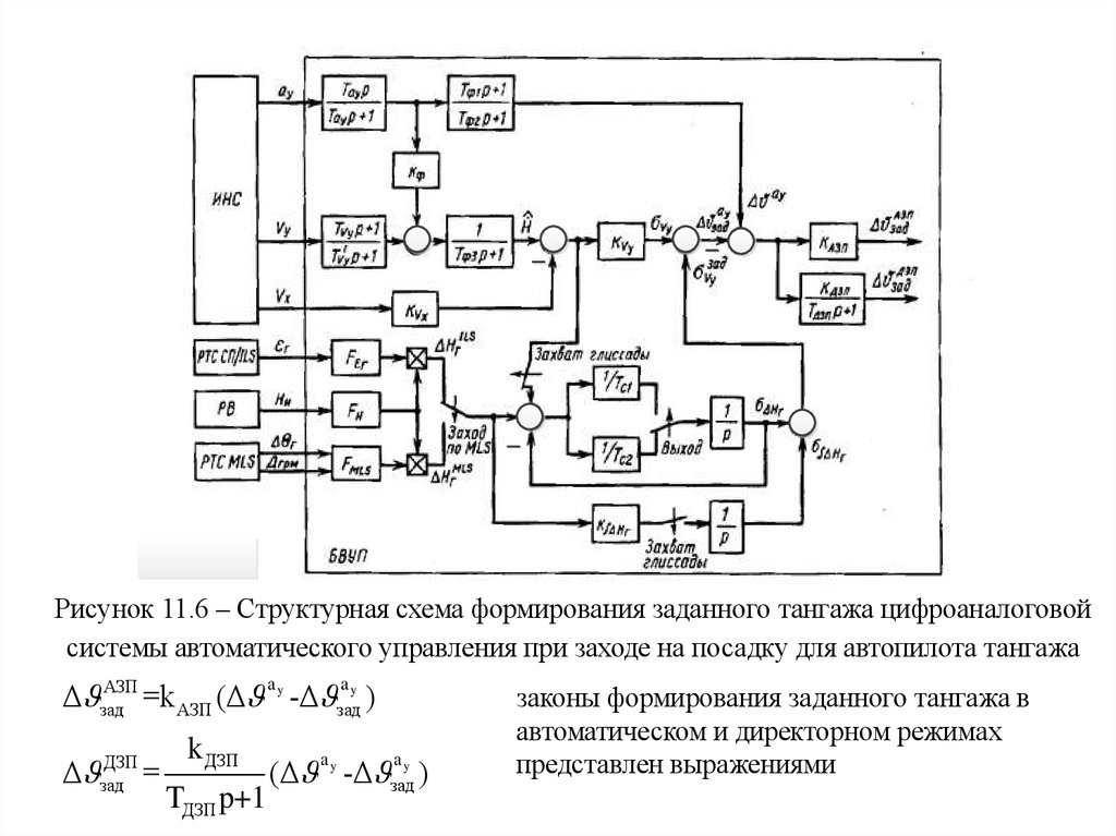 Рисунок 11.6 – Структурная схема формирования заданного тангажа цифроаналоговойсистемы автоматического управления при заходе на посадку для автопилота тангажа