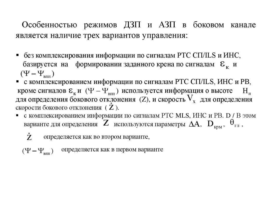 Особенностью режимов ДЗП и АЗП в боковом каналеявляется наличие трех вариантов управления: