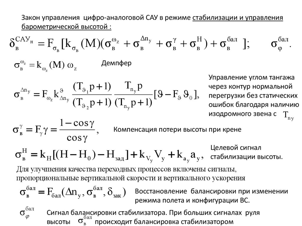 Закон управления цифро-аналоговой САУ в режиме стабилизации и управлениябарометрической высотой :