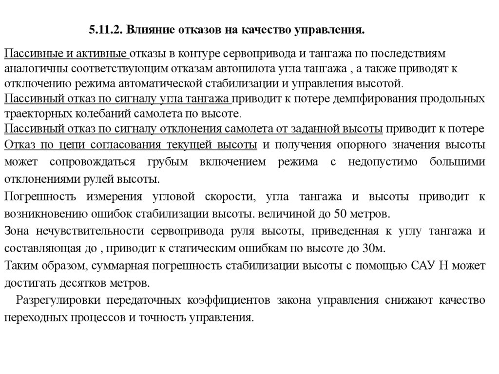 5.11.2. Влияние отказов на качество управления.Пассивные и активные отказы в контуре сервопривода и тангажа по последствиям