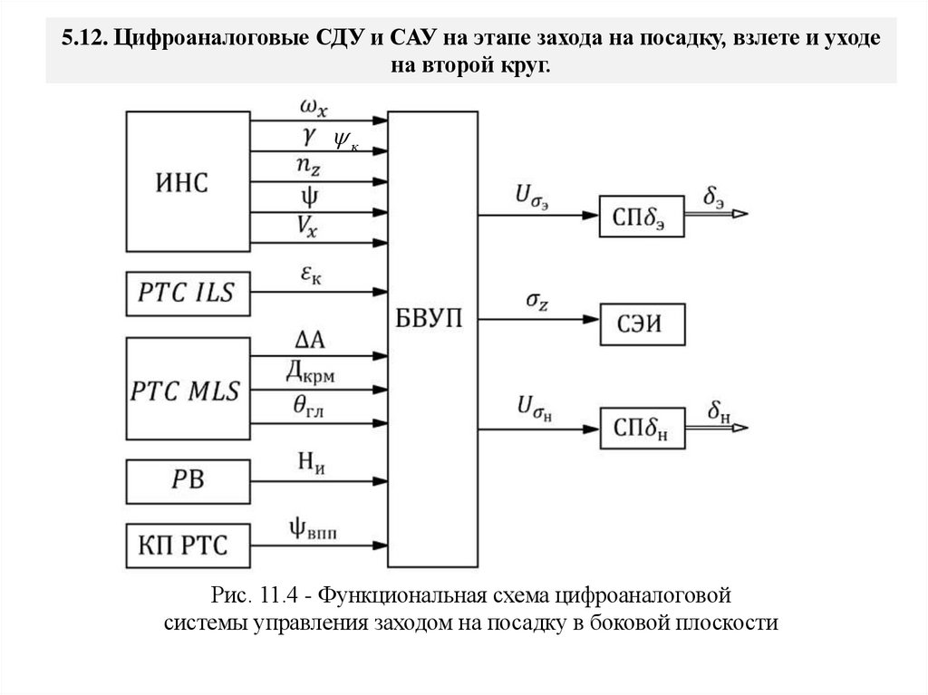 5.12. Цифроаналоговые СДУ и САУ на этапе захода на посадку, взлете и уходена второй круг.