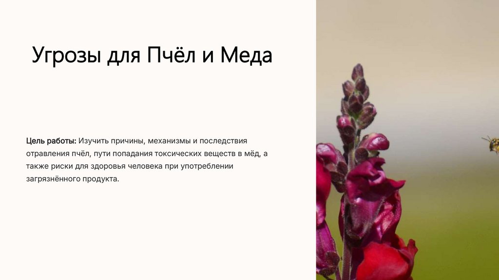 Угрозы для Пчёл и МедаЦель работы: Изучить причины, механизмы и последствия