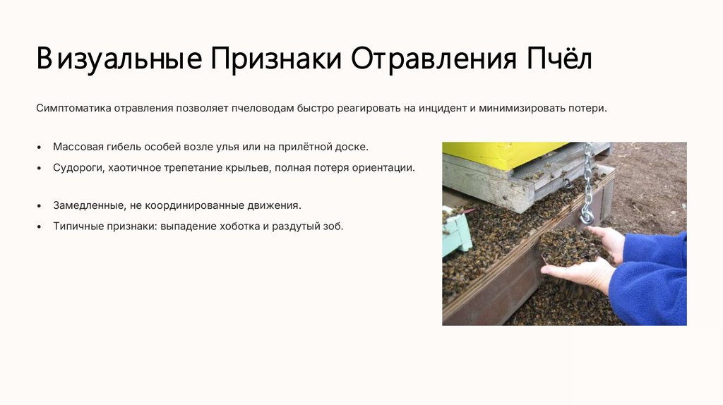 В изуальные Признаки Отравления ПчёлСимптоматика отравления позволяет пчеловодам быстро реагировать на инцидент и минимизировать потери.