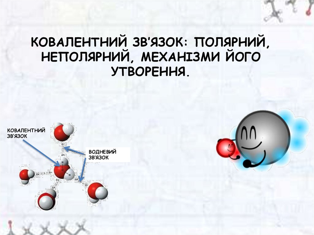 КОВАЛЕНТНИЙ ЗВ’ЯЗОК: ПОЛЯРНИЙ,НЕПОЛЯРНИЙ, МЕХАНІЗМИ ЙОГО