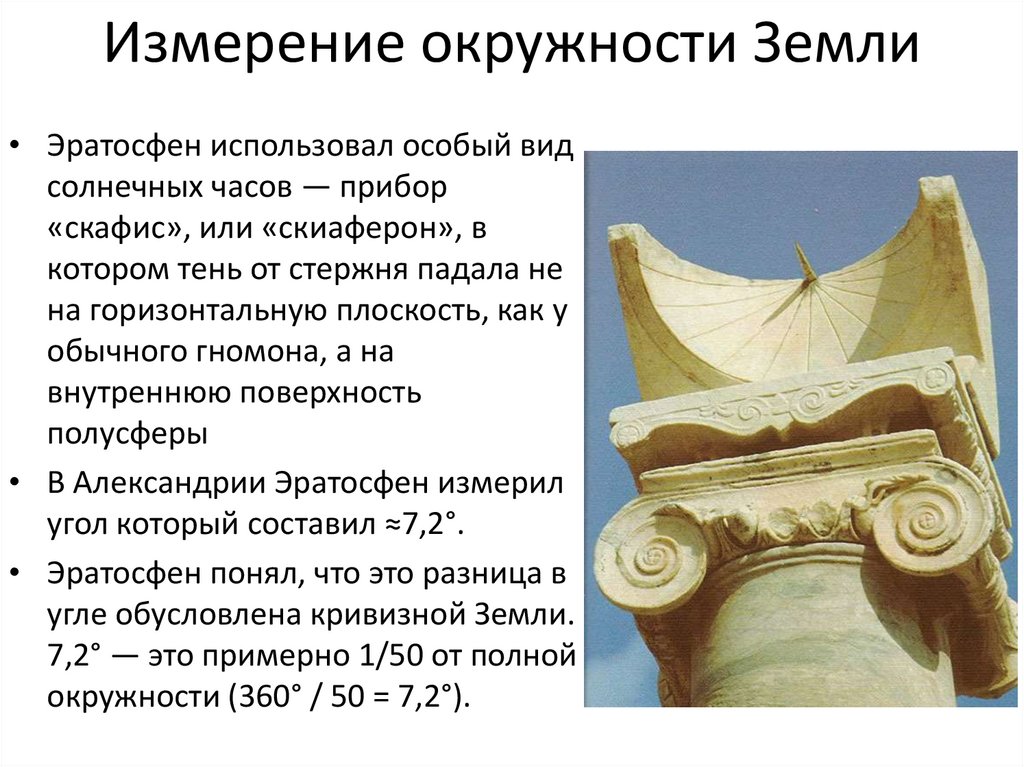 Измерение окружности Земли• Эратосфен использовал особый вид