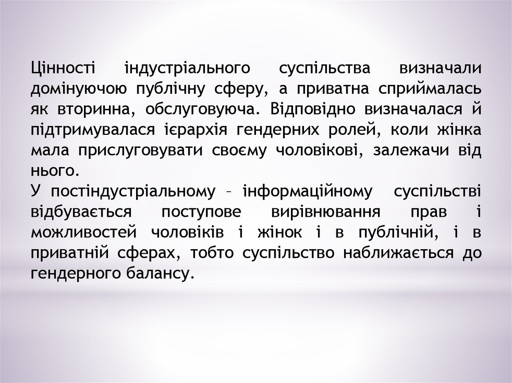 підтримувалася ієрархія гендерних ролей, коли жінка