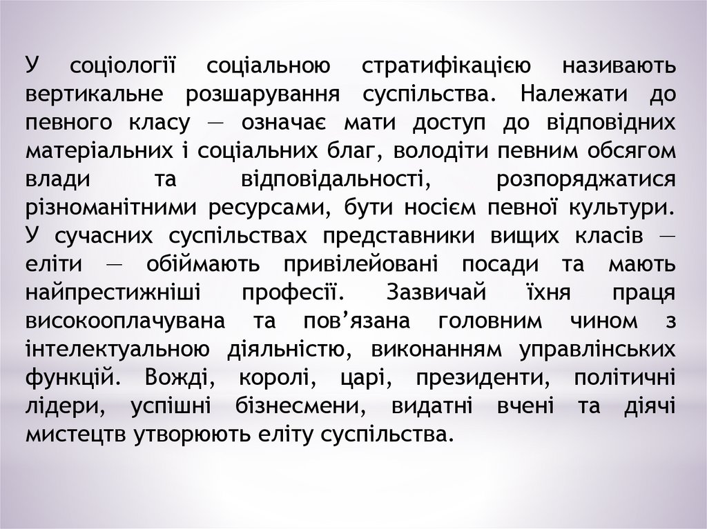 У соціології соціальною стратифікацією називаютьвертикальне розшарування суспільства. Належати до