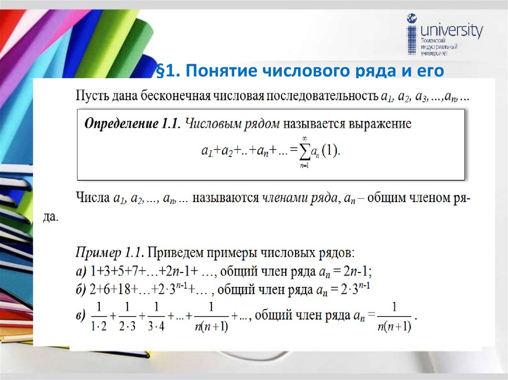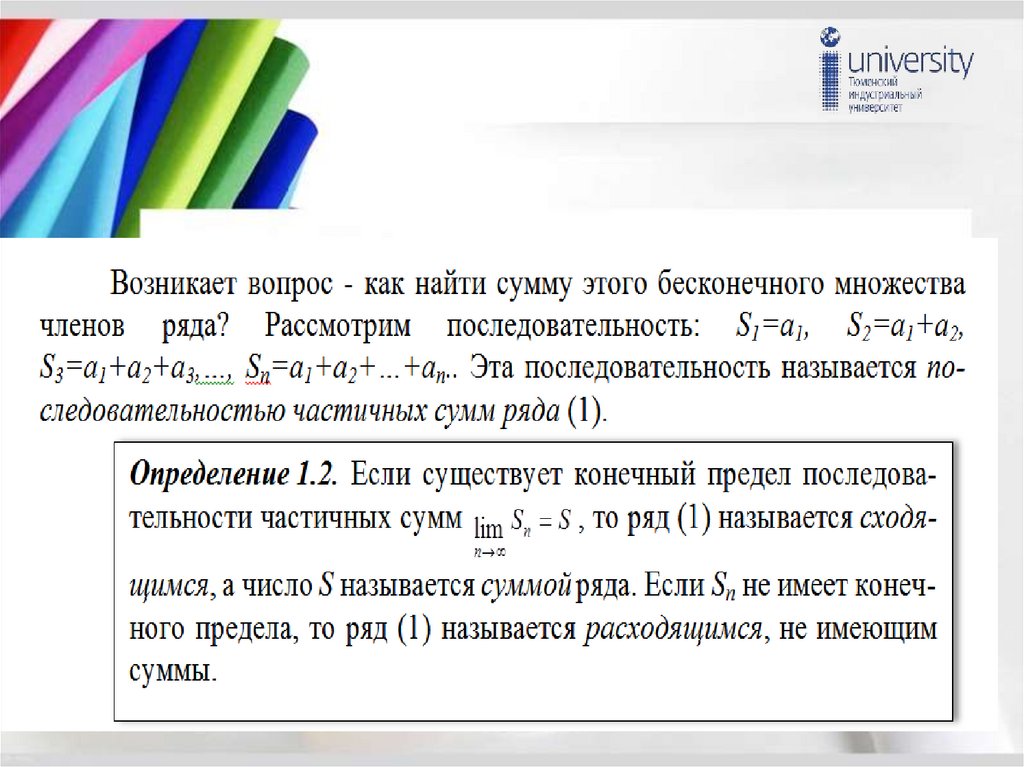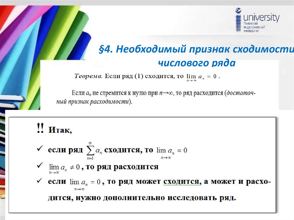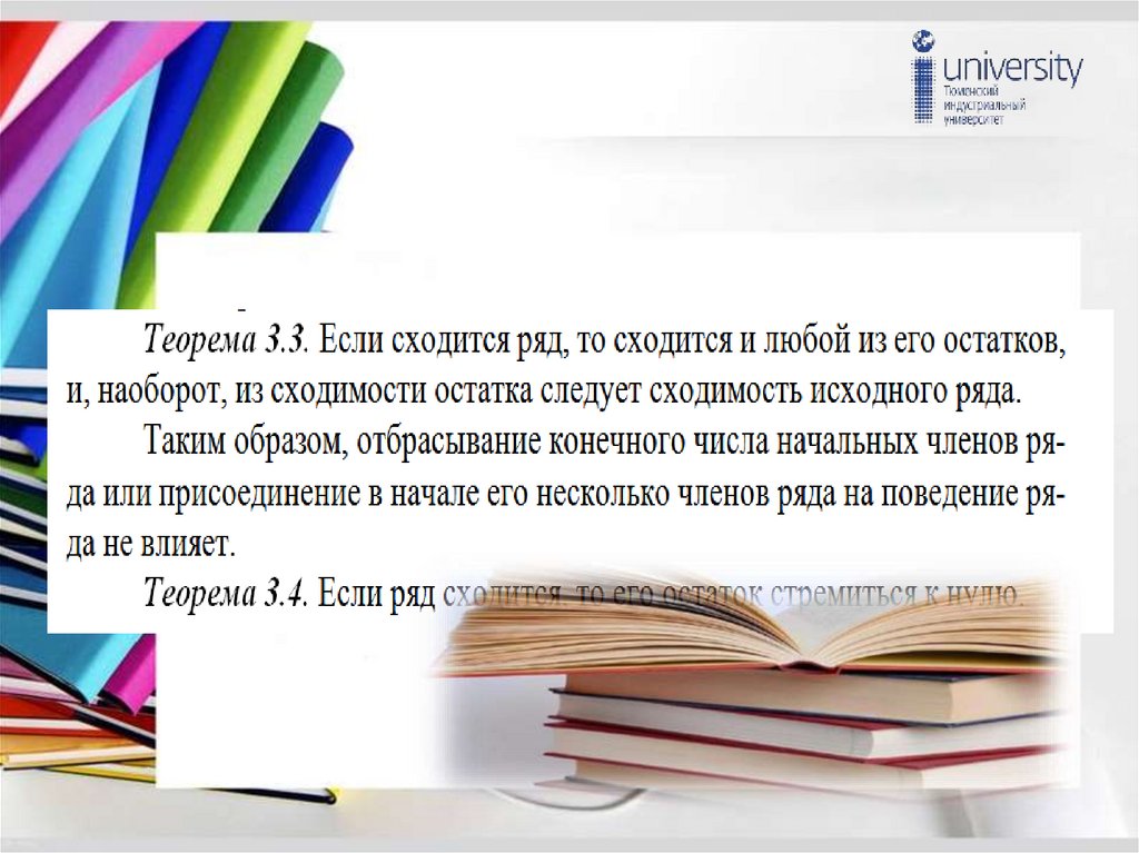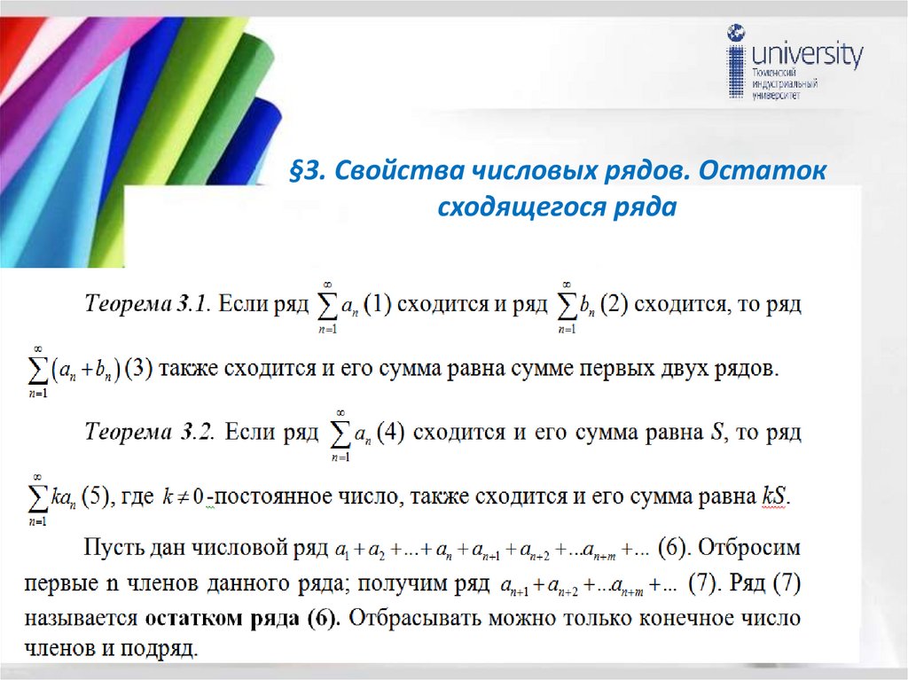 §3. Свойства числовых рядов. Остатоксходящегося ряда