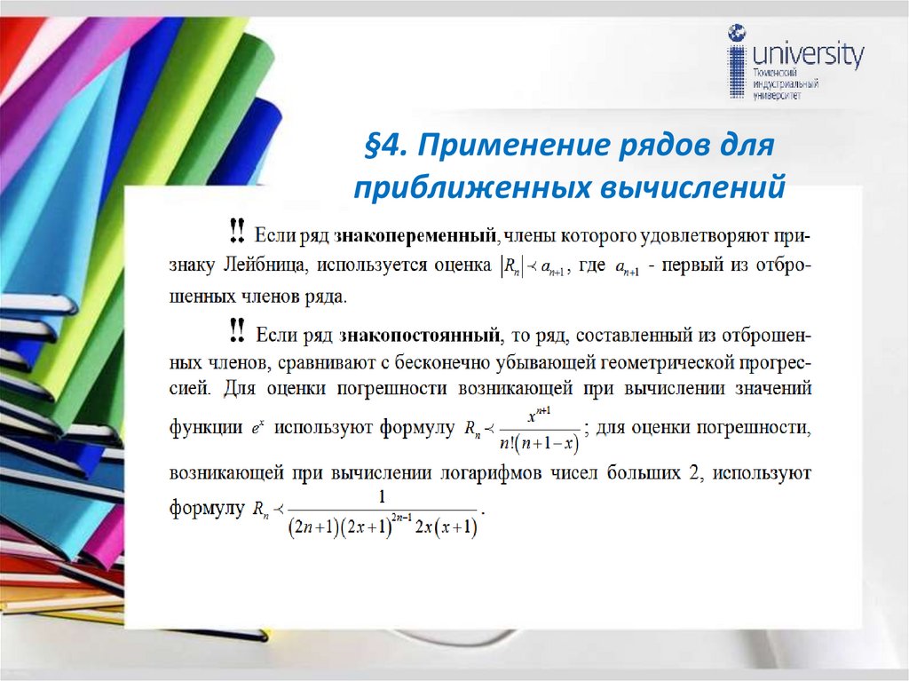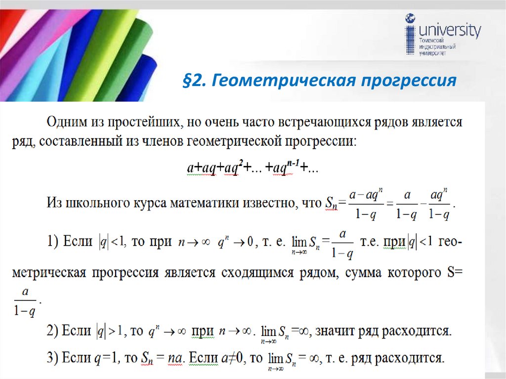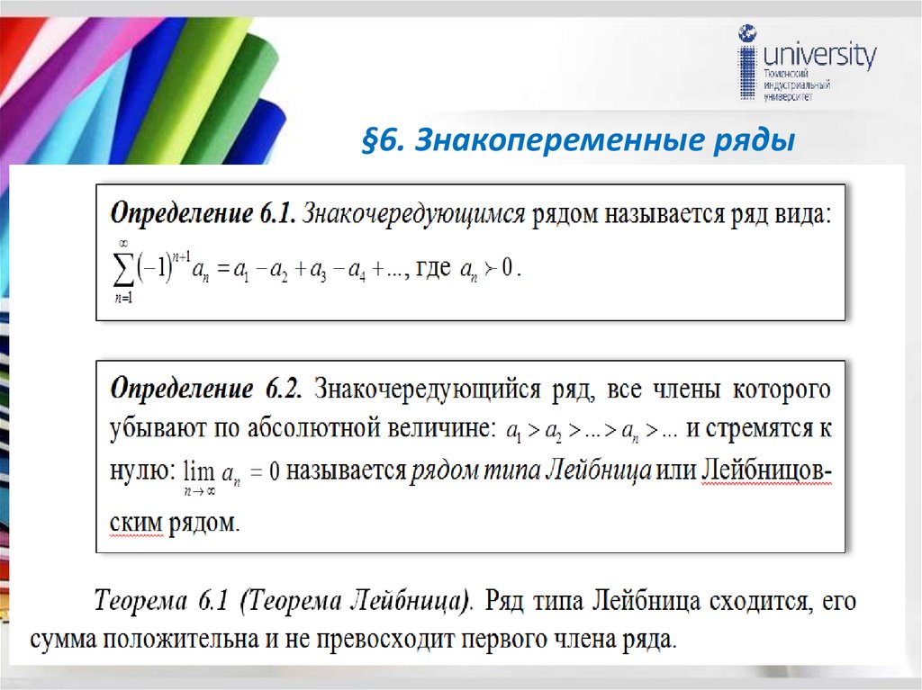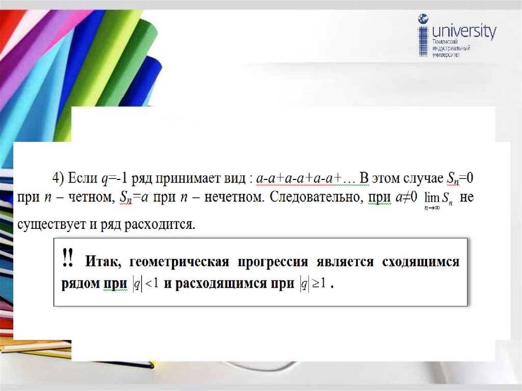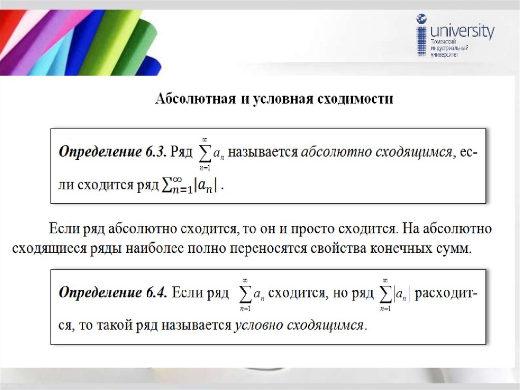 §3. Свойства числовых рядов. Остатоксходящегося ряда