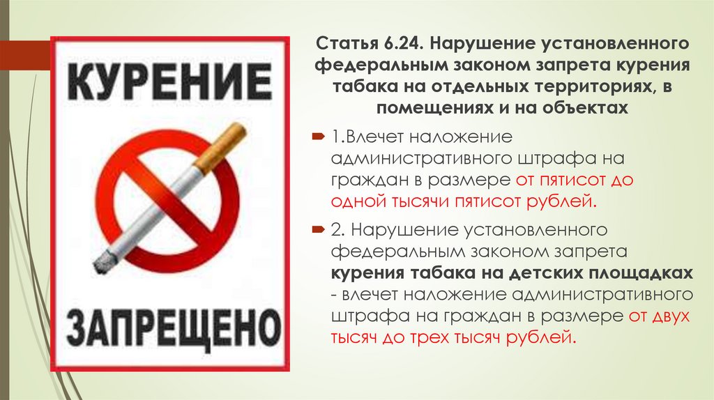 Статья 6.24. Нарушение установленногофедеральным законом запрета курения