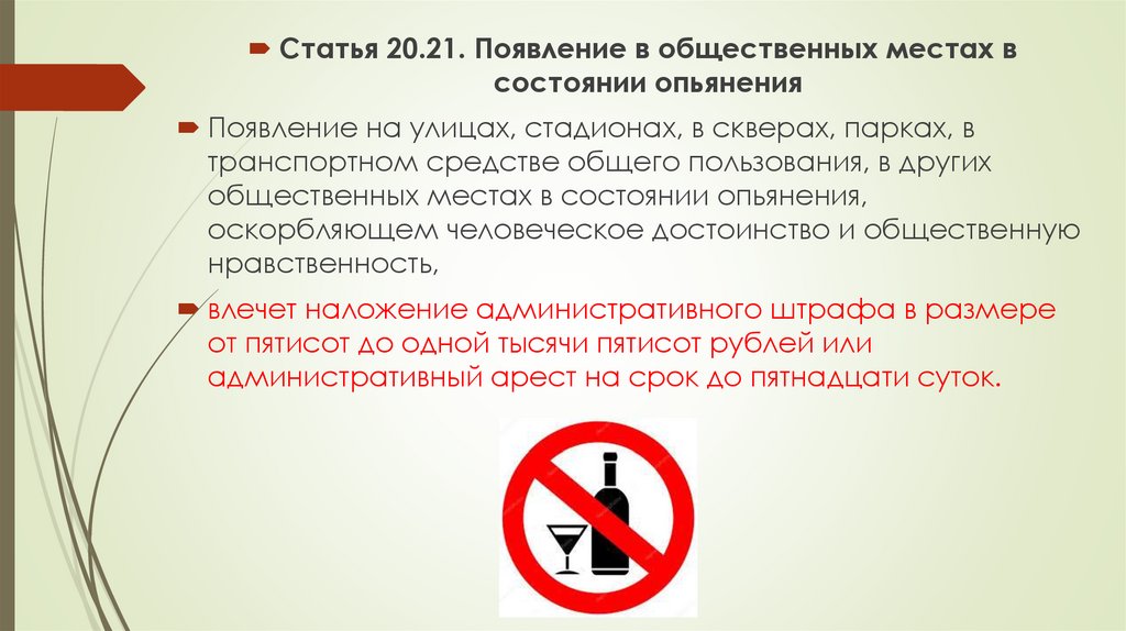 Статья 20.21. Появление в общественных местах всостоянии опьянения