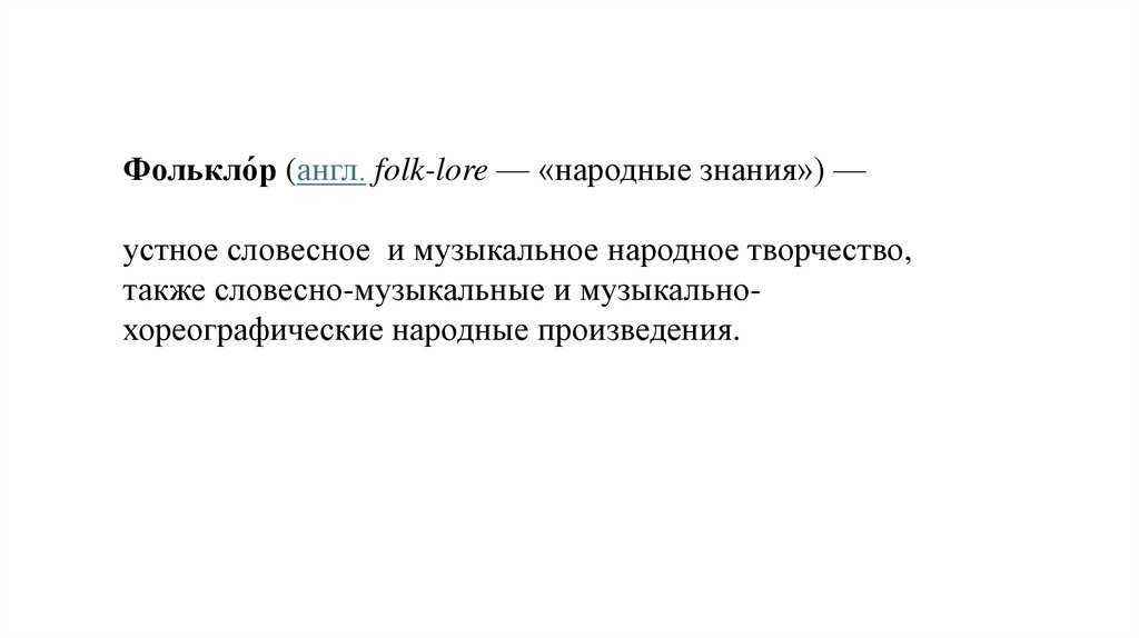 Фолькло́р (англ. folk-lore — «народные знания») —устное словесное и музыкальное народное творчество,