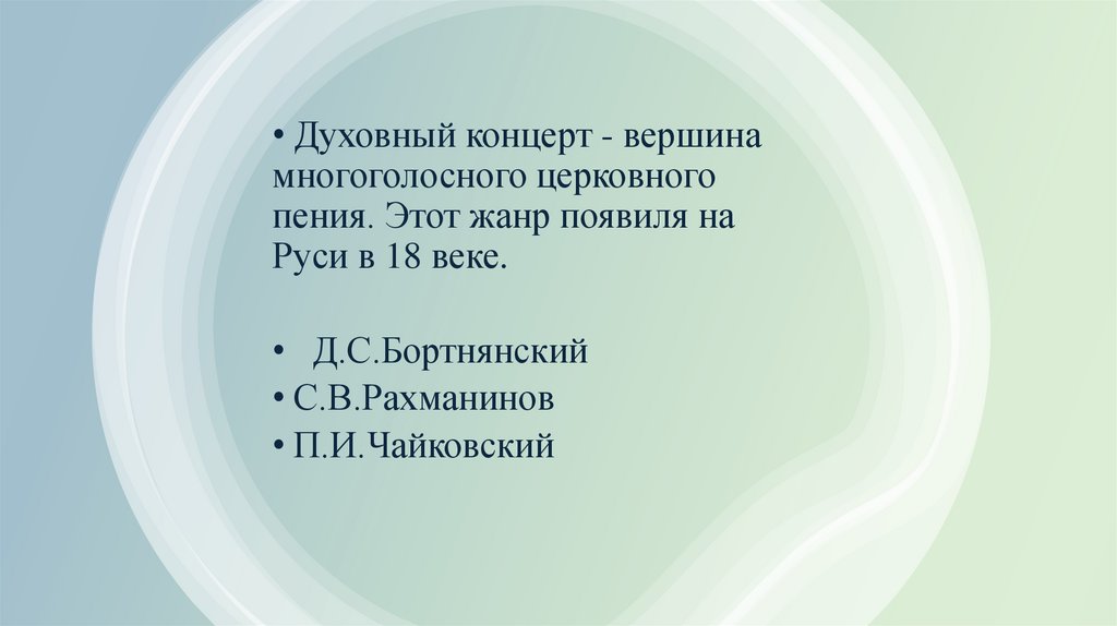 Музыка в Древней Руси Христианского периода. Духовный концерт.19.