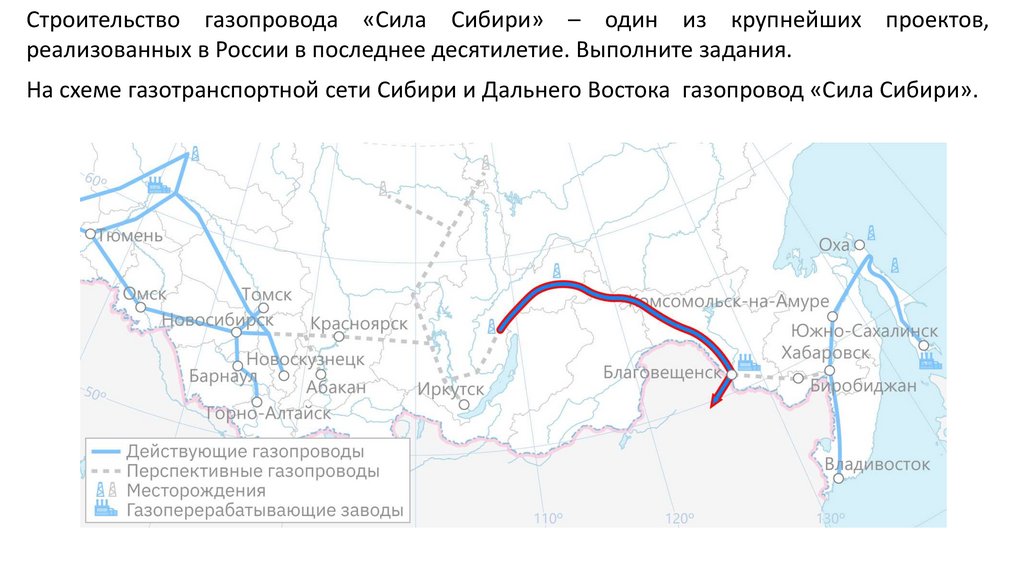 Строительство газопровода «Сила Сибири» – один из крупнейших проектов,реализованных в России в последнее десятилетие. Выполните задания.