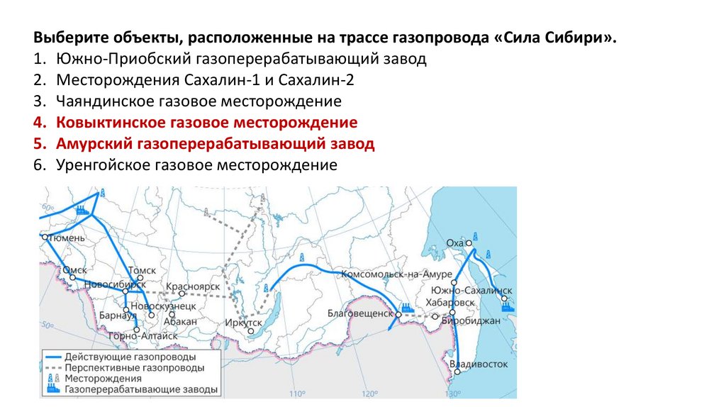 Выберите объекты, расположенные на трассе газопровода «Сила Сибири».1. Южно-Приобский газоперерабатывающий завод