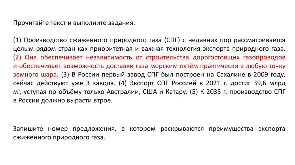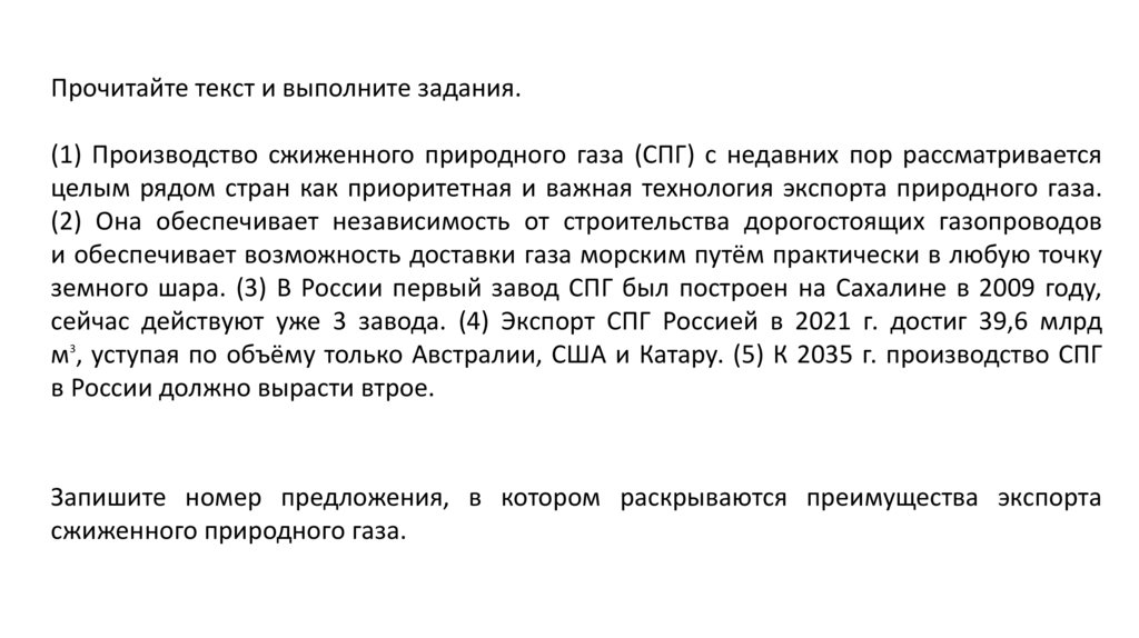 Прочитайте текст и выполните задания.(1) Производство сжиженного природного газа (СПГ) с недавних пор рассматривается