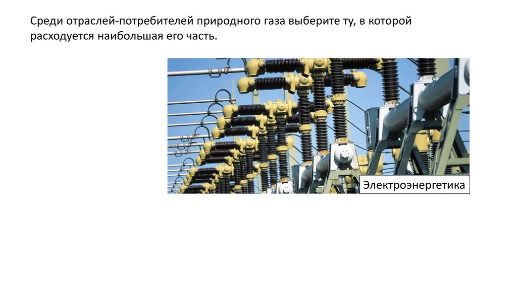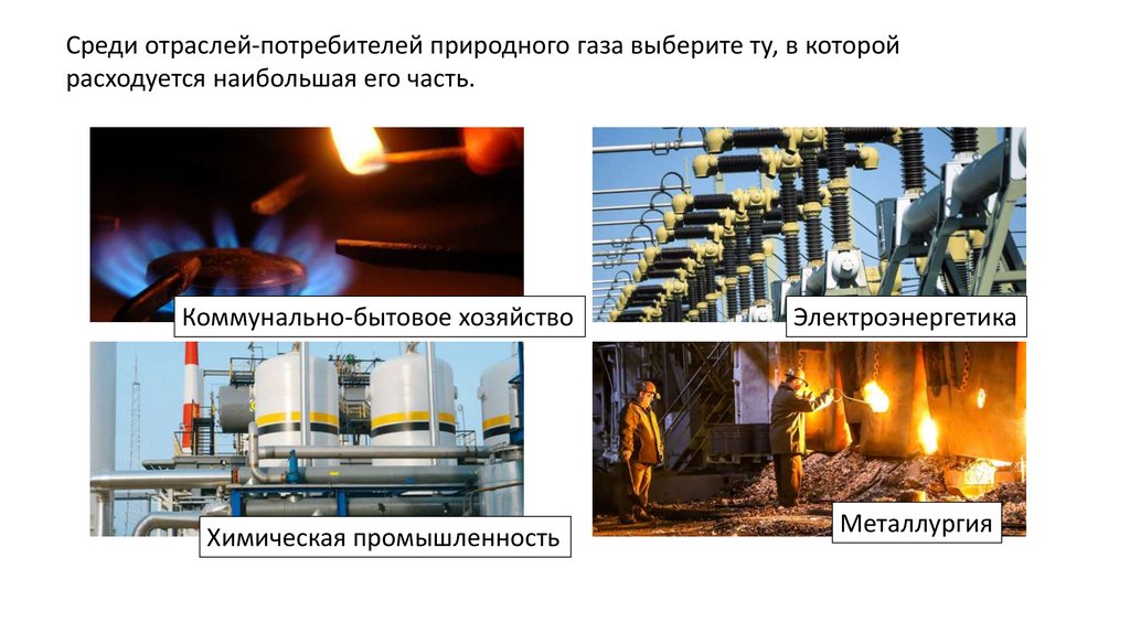 Среди отраслей-потребителей природного газа выберите ту, в которойрасходуется наибольшая его часть.