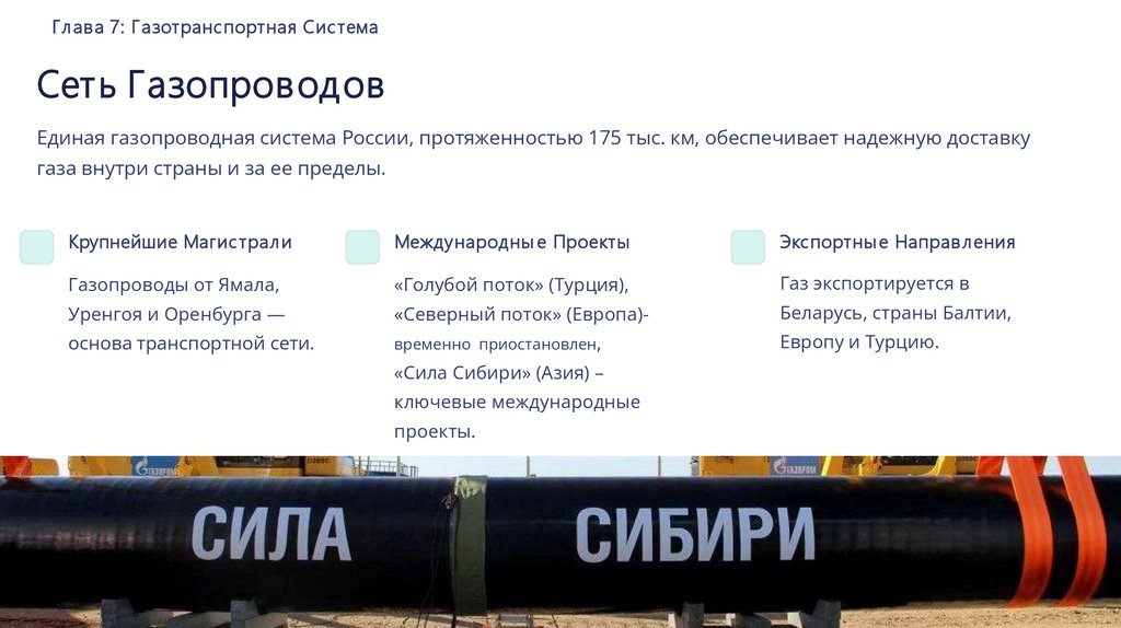 Единая газопроводная система России, протяженностью 175 тыс. км, обеспечивает надежную доставку