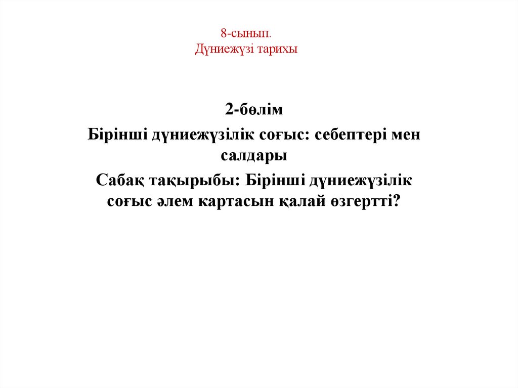 Сабақ тақырыбы: Бірінші дүниежүзілік