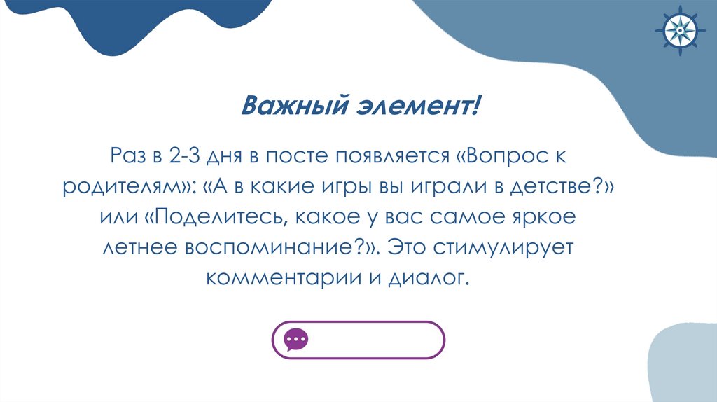 Важный элемент!Раз в 2-3 дня в посте появляется «Вопрос к