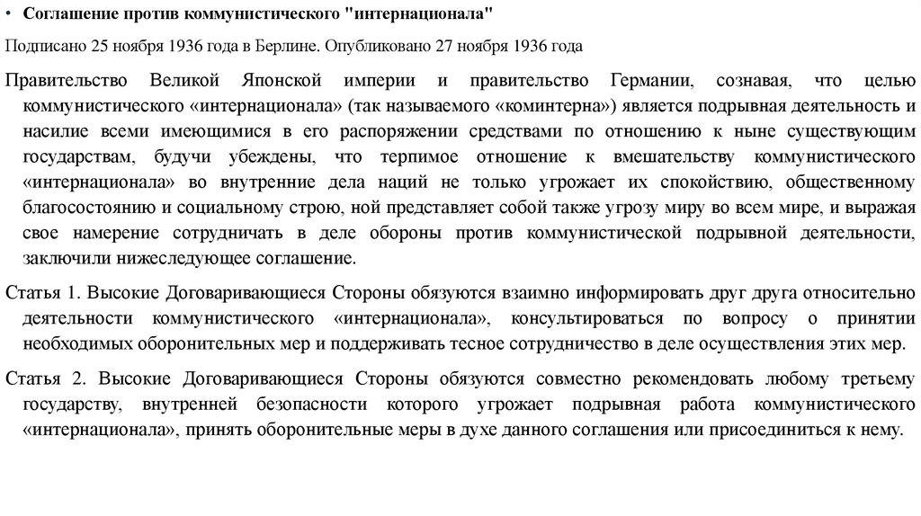 иностранным капиталам; прекратить революционную пропаганду в их странах.