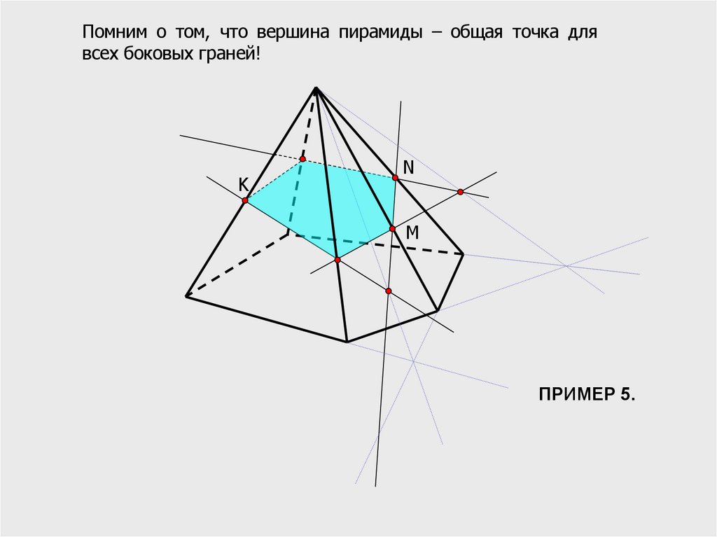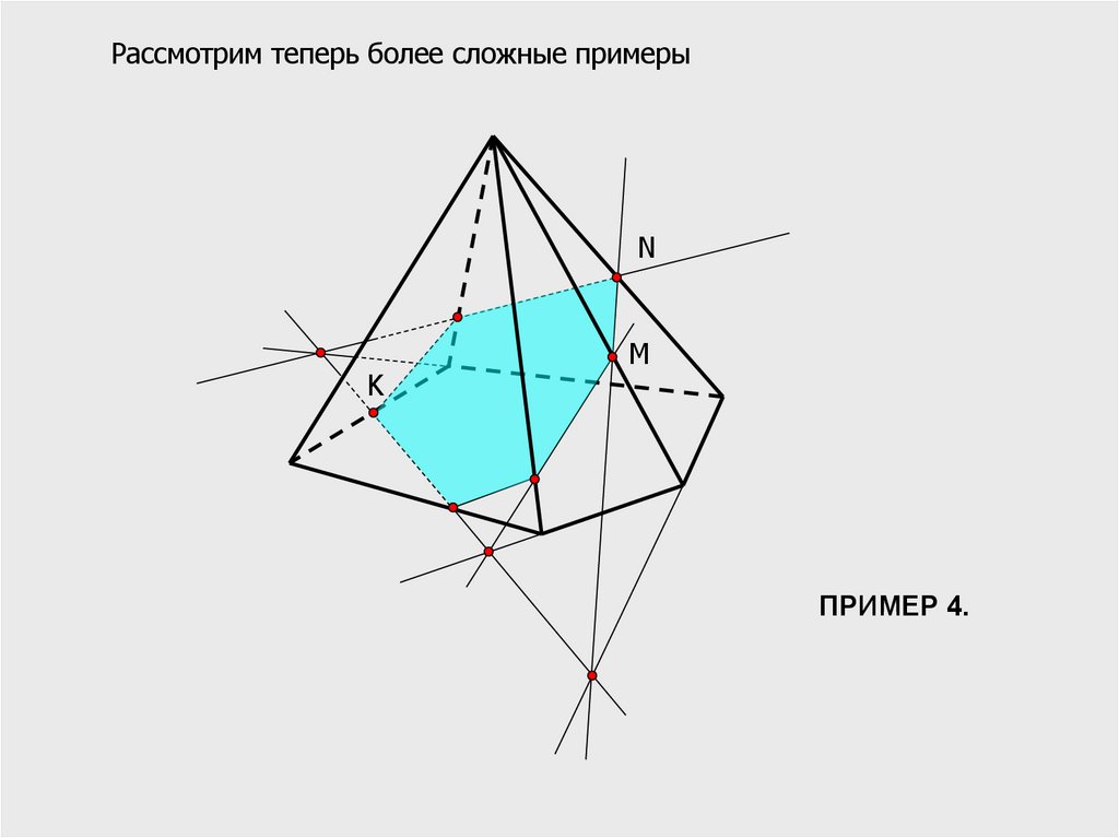 ПРИМЕР 2.Построить сечение четырехугольной пирамиды, заданное точками M,N и K.