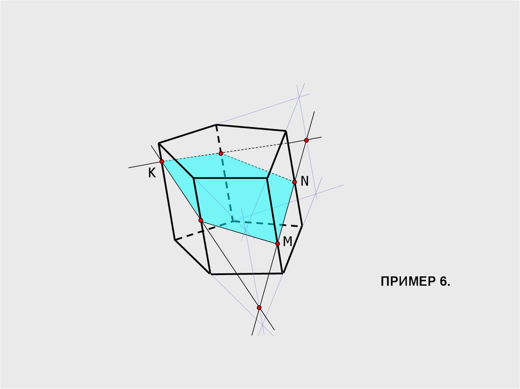 ПРИМЕР 3.Построить сечение пятиугольной призмы, заданное точками M,N и K. Проследите