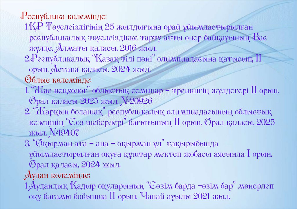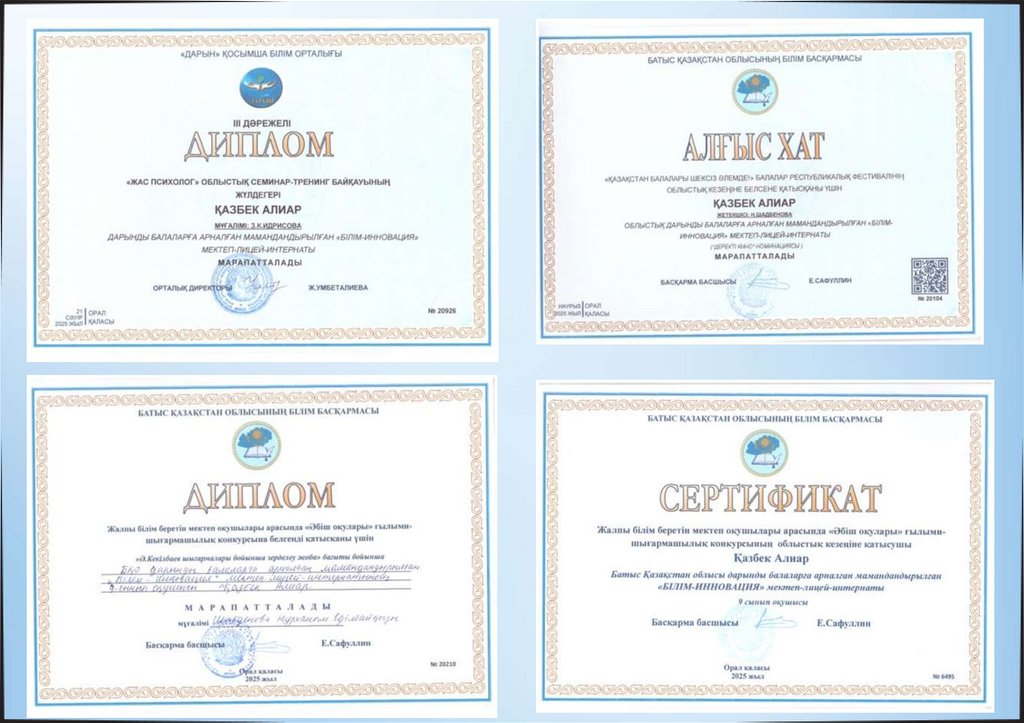кезеңінің “Сөз шеберлері” бағытының ІІ орын. Орал қаласы. 2025