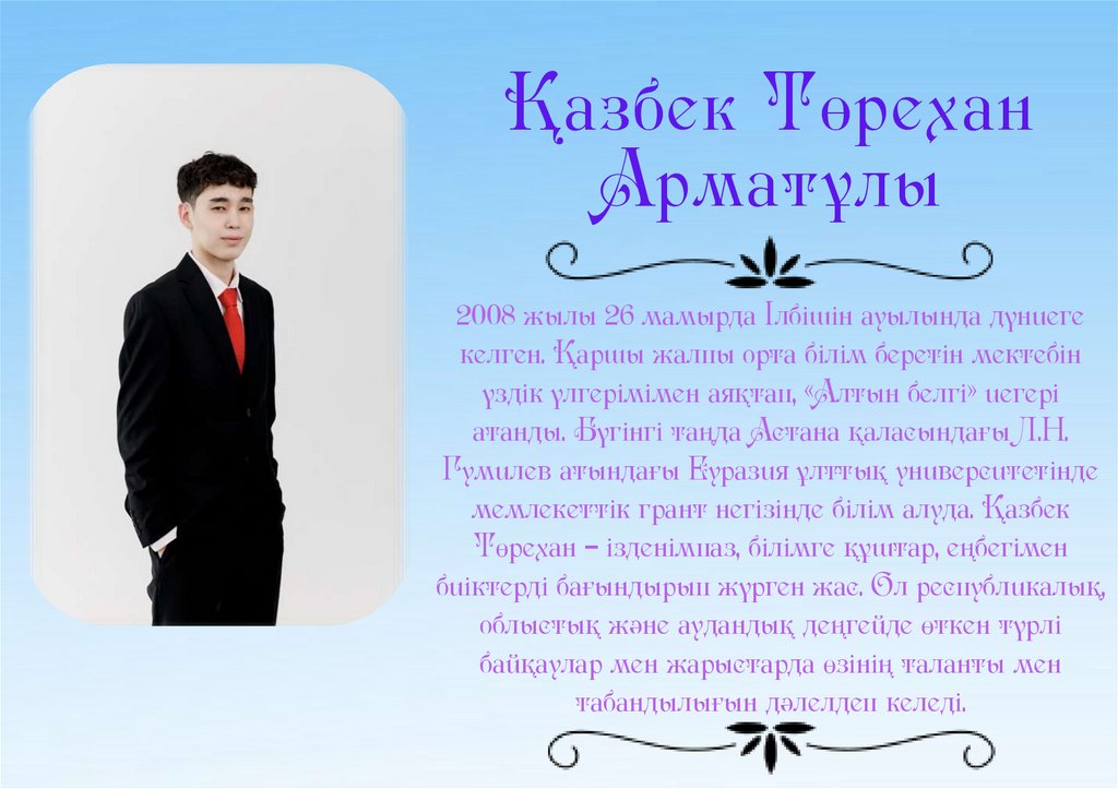 мемлекеттік грант негізінде білім алуда. Қазбек