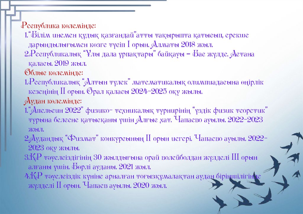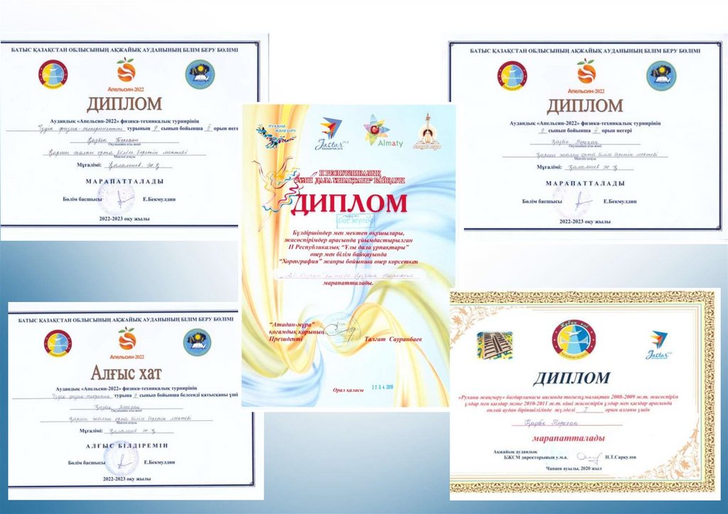 2.Аудандық “Физмат” конкурсының ІІ орын иегері. Чапаево ауылы. 20222023 оқу жылы.